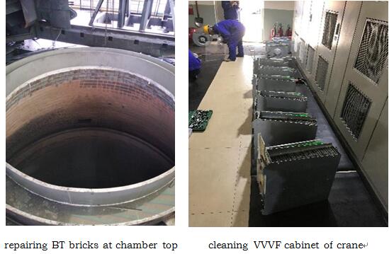Our company BJCEEE set up one technical group consisting of engineers in the occupations of machinery, heating, refractory and electricity with the guidance of the project manager. In addition to the refractory materials and the equipment with the chamber proper, the overhauling items also included circulatory system, boiler system, secondary dust catcher, circulation gas blower, sub-economizer, blasting device as well as the systems of electricity and automations for further checking, testing and maintenance. The detailed reports for professional maintenance and proposals were submitted to the customer after the overhaul. The duration of the overhaul only lasted for 14days, ahead of 7days as planned.