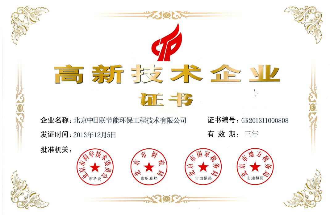 2014年3月に北京中日聯節能環保工程有限公司(以下、「BE3」という)は、中国科学技術部の許可を得て「国家ハイテク企業」に入選いたしました。本資格の取得により、今後BE3の「優れた環境技術の提供・市場開発・企業の持続可能な発展」を促すようになりました。
